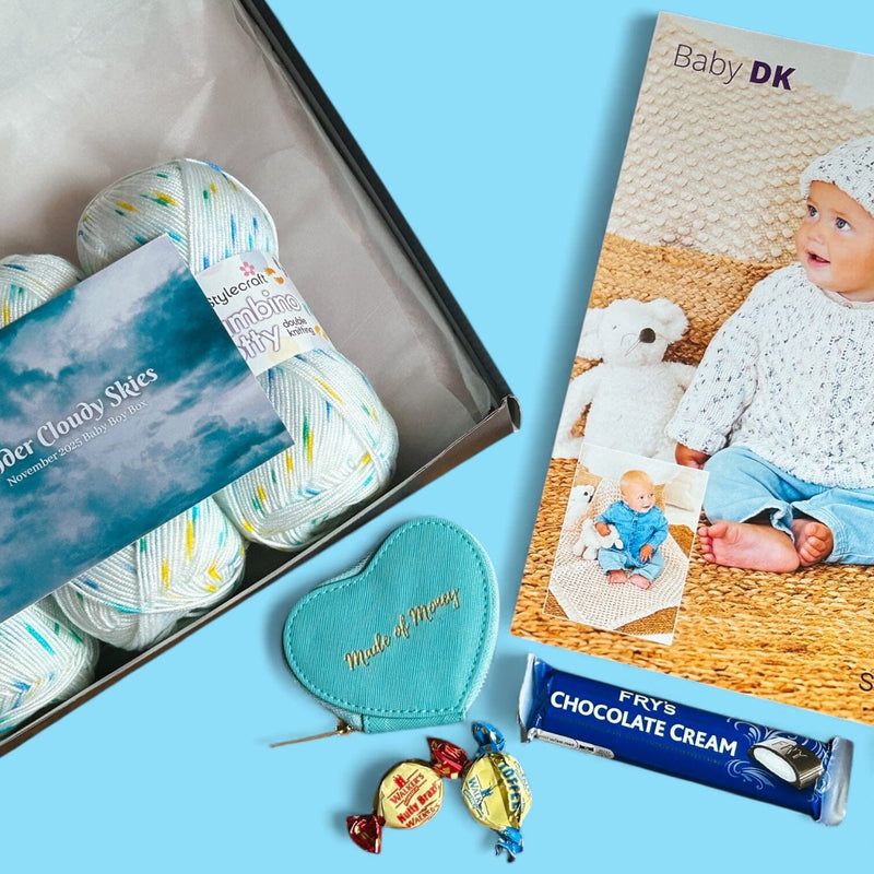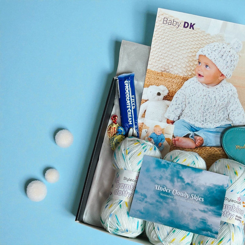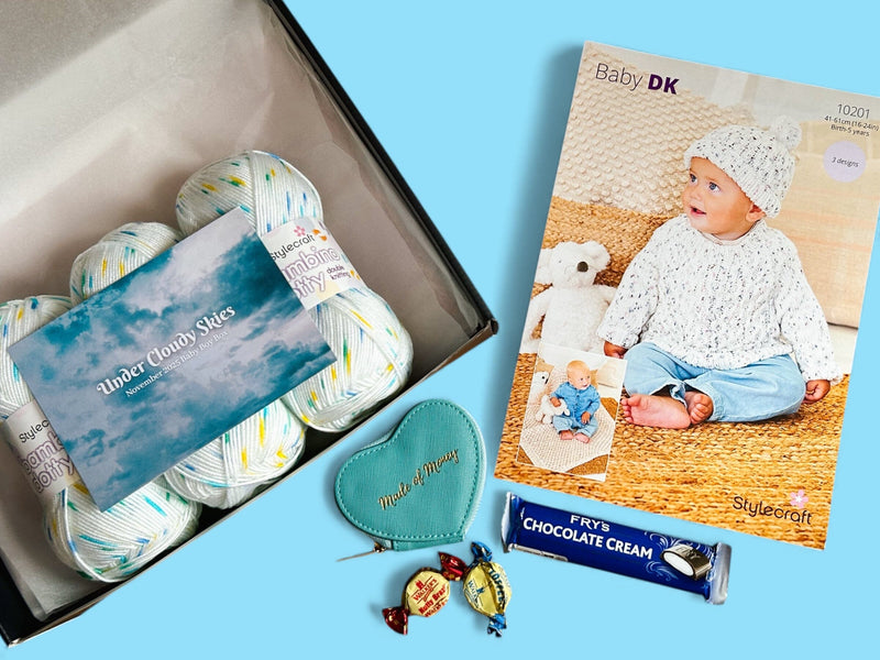 Under Cloudy Skies – November Baby Boy Knitting Box ☁️💙