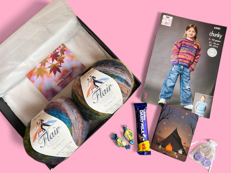 Capture the beauty of autumn in every stitch with the Dancing Leaves box - a cosy, creative treat filled with warmth and colour.