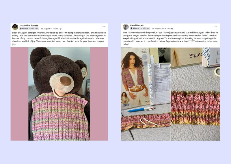 When you become a customer, you’ll unlock access to our VIP knitting community—a welcoming space where creativity thrives! Share your progress, get tips and inspiration, and connect with fellow knitters who share your passion. It’s more than just knitting; it’s a place to belong. 🧶